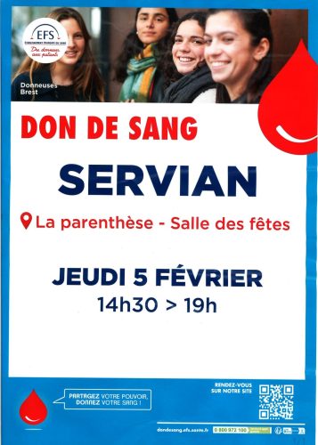 5 févrie : DON DU SANG à Servian