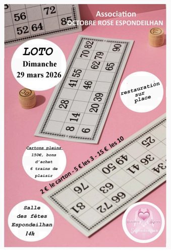dim 29 mars : l’association Octobre Rose Espondeilhan vous propose un LOTO