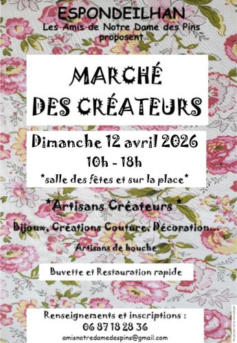 12 avril : Marché des Créateurs, sur la place et dans la salle des fêtes.
