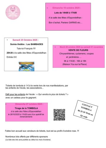 👉 dim 26 octobre : Tirage de la Tombola et apéritif de remerciements 11 h 30