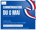 8 mai : commémoration du 8 mai 1945 à 11h. Départ 10h45 du parking de la Mairie.